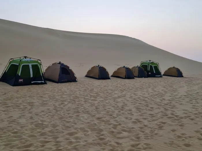 Later, drive to Samuel Dunes, where you will set up camp amidst the golden sand dunes. Engage in sandboarding, relax under the vast desert sky, and savor a delicious dinner before spending the night in a desert camp.