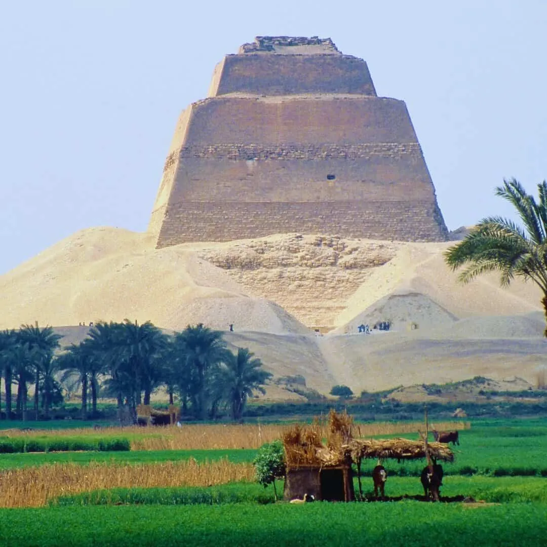 Desert Cruise Travel representative will pick you up from your hotel in Cairo to visit the famous pyramids in El Fayoum. We’ll begin with the Hawara Pyramid, located about 145 km from Cairo. The Hawara Pyramid was built by King Amenemhat III during the 12th Dynasty. Next, we will drive to the El Lahun Pyramid, which is around 7 km from the Hawara Pyramid. This pyramid was built by King Senusert II, also from the 12th Dynasty. After that, we’ll visit the Maydoum Pyramid, located about 40 km from the El Lahun Pyramid. Once we’ve finished exploring, we’ll enjoy a late lunch before heading back to your hotel in Cairo.