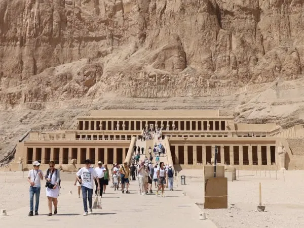 After a relaxing breakfast at your hotel, your guide will take you to the West Bank of the Nile River. Here, you’ll see the colossal statues of Amenhotep III (Colossi of Memnon) and explore the Valley of the Kings, home to magnificent tombs carved deep into the desert rock, richly decorated and filled with treasures for the pharaohs' afterlife. You’ll visit three tombs before continuing to the impressive Hatshepsut Temple at El Deir El Bahary. This stunning temple, dedicated to Queen Hatshepsut, the only female pharaoh, rises from the desert plain in a series of terraces and merges seamlessly with the surrounding limestone cliffs. Enjoy lunch at a local restaurant, then embark on a felucca to Banana Island on the Nile River. Finally, transfer to Luxor Airport for your flight back to Cairo, where a Desert Cruise Travel representative will meet you and transfer you by private, air-conditioned van to your Cairo hotel.